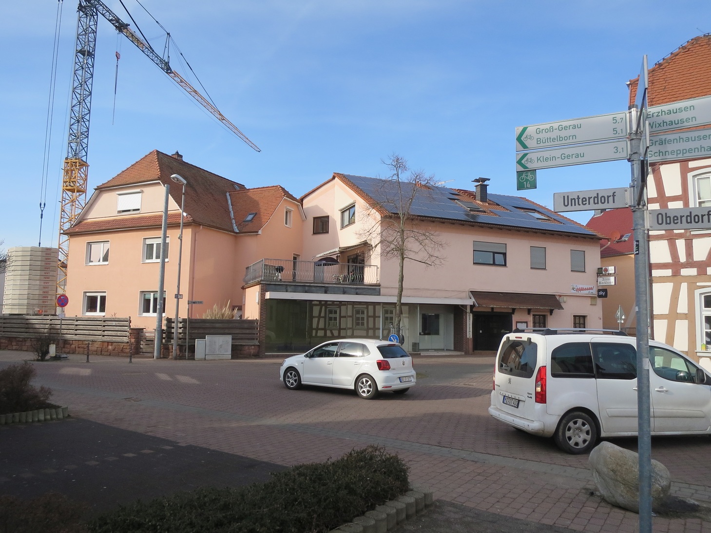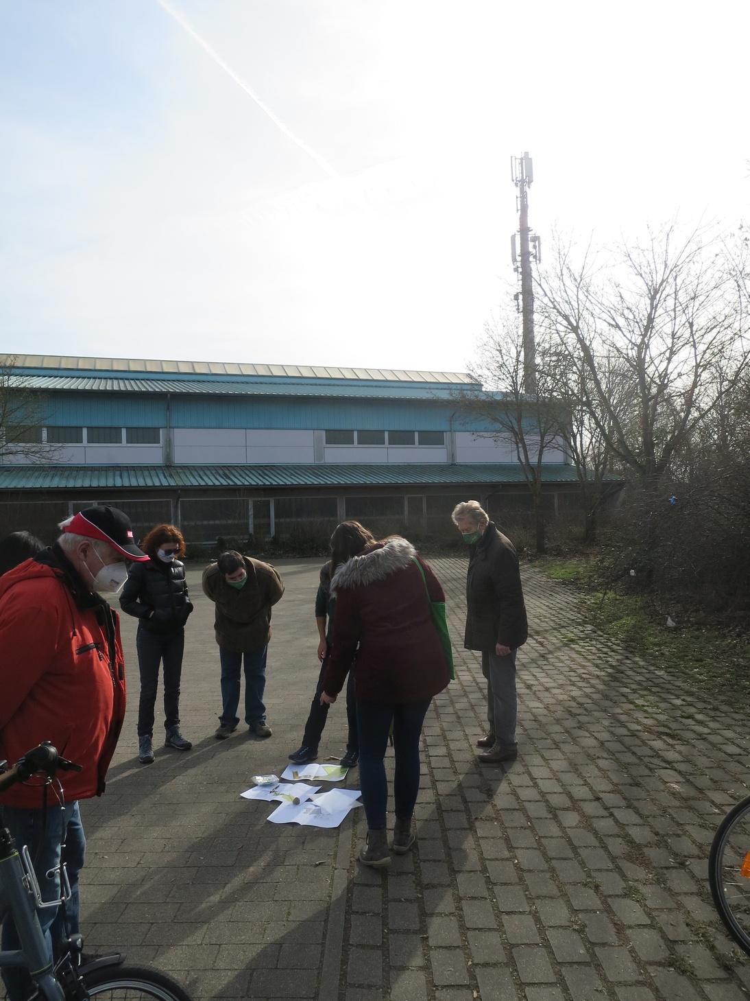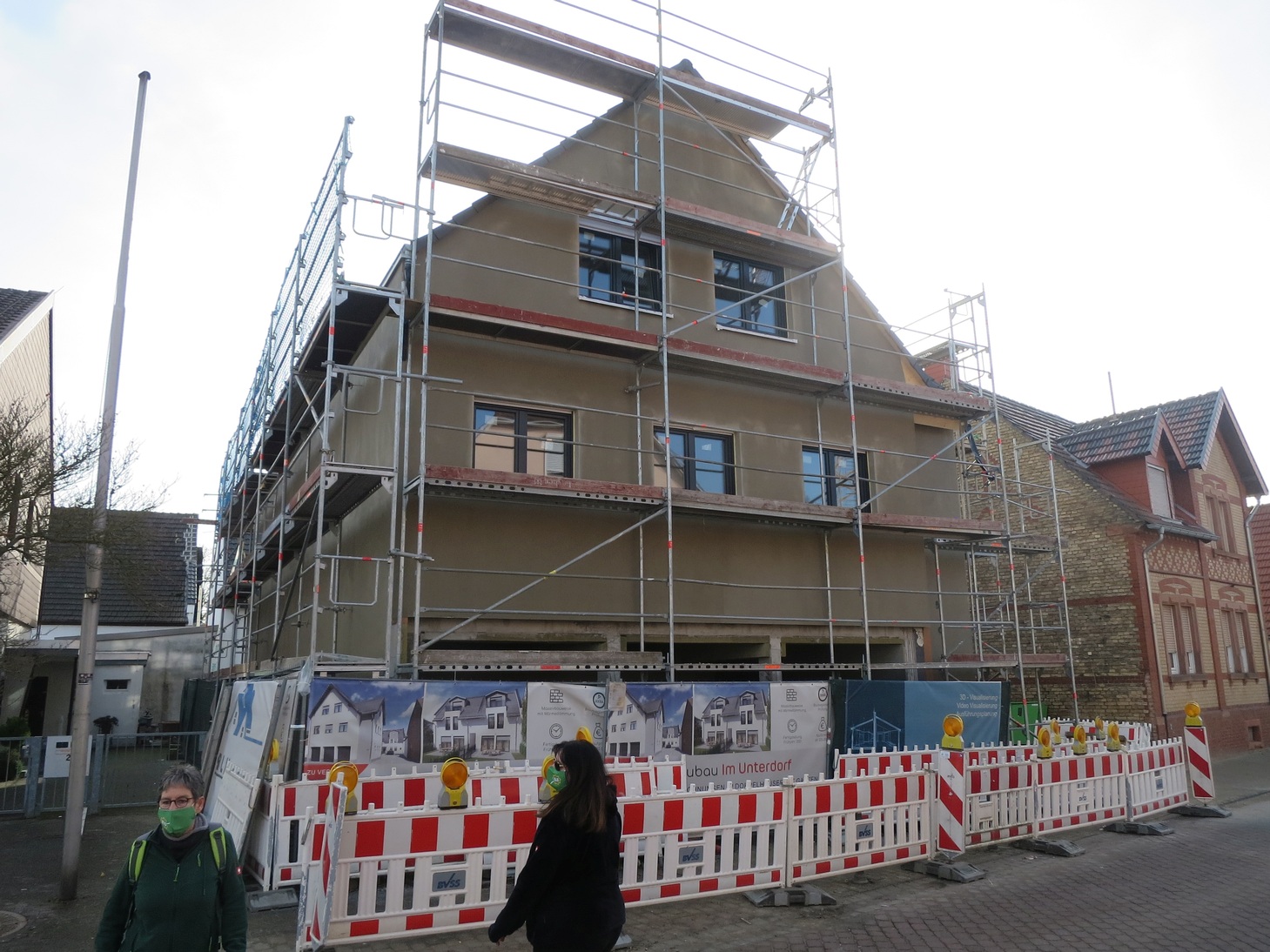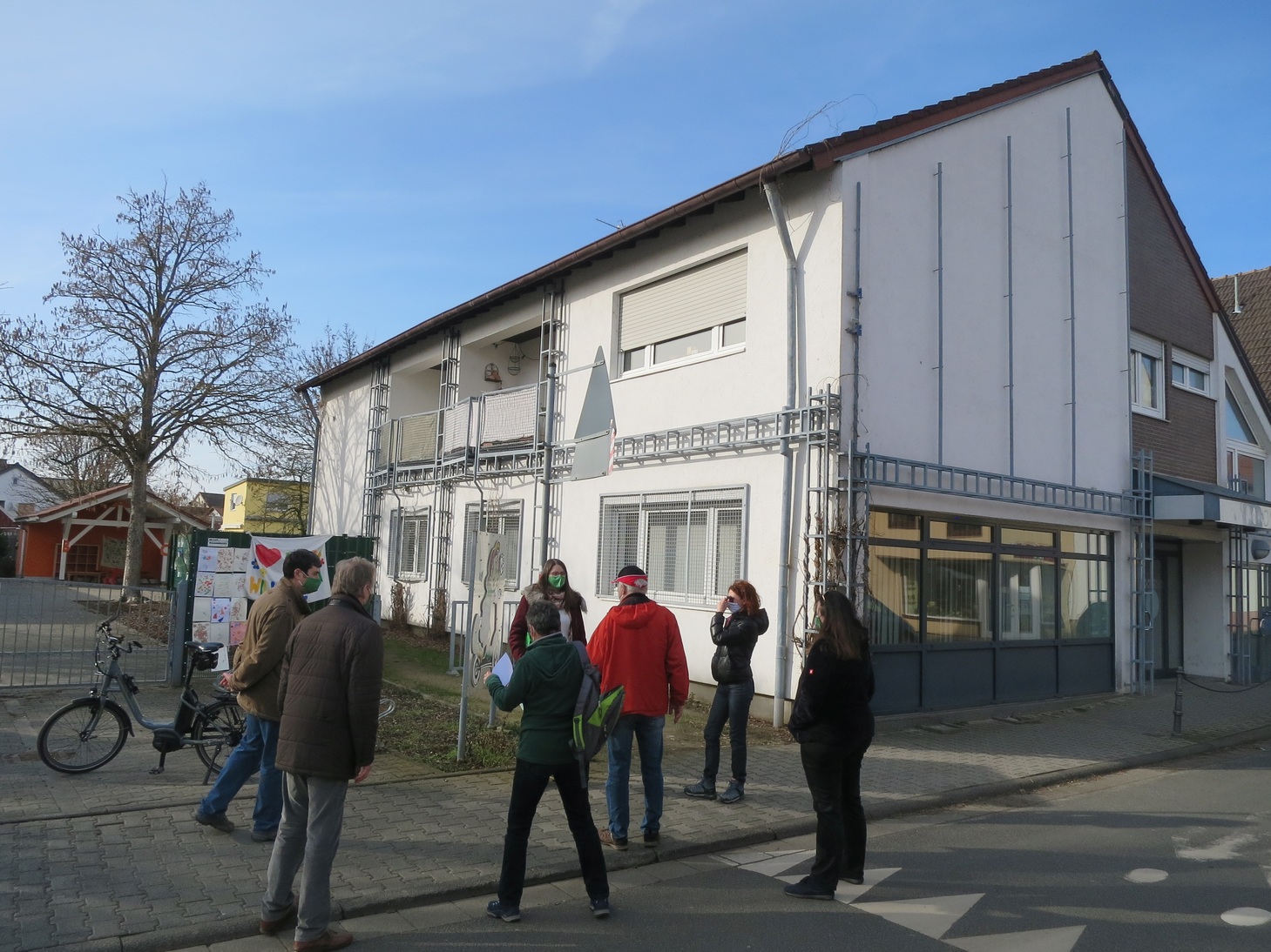 Der Rundgang führte uns von der Sporthalle zum Bürgerhaus, zur KiTa Im Baumgarten und der Grundschule. In der Ortsmitte sahen wir dann einige positive als auch umstrittene Beispiele zum Thema Ortsbebauung.